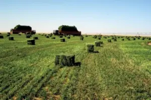 في مزرعة الحمرانية التابعة للشركة تتم زراعة الأعلاف الطبيعية الخضراء وذلك عن طريق استخدام كامل للمكننة في الري والزراعة والحش والتجميع وذلك للتغذية اليومية للأبقار الشي الذي يميز منتجاتنا .